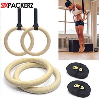 Pacearth wooden gymnastic rings with adjustable cam buckle straps.